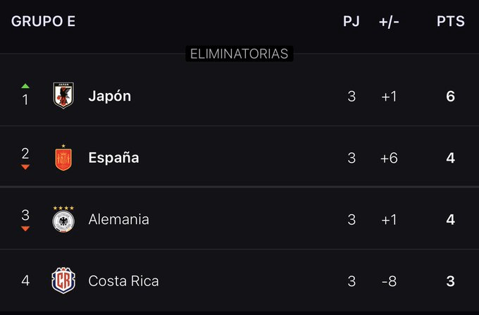 El triunfo de Japón provocó que España acabara en segundo lugar y que Alemania fuera eliminada, pese a que venció por 4-2 a Costa Rica, en un cotejo en que los centroamericanos llegaron a ponerse 2-1 al frente. Fueron 90 minutos de emociones que, al final, desembocaron en amargura. En especial para los germanos, que perturbaron al anfitrión y a la FIFA con sus presiones por el tema de los brazaletes arcoíris y los derechos humanos.