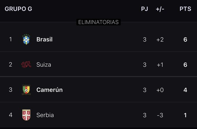 El segundo lugar del grupo G fue para Suiza, que se impuso en un intenso partido a Serbia por 3-2. Si el equipo del DT Murat Yakin anotaba un gol más, incluso hubiera acabado como vencedor de la llave.