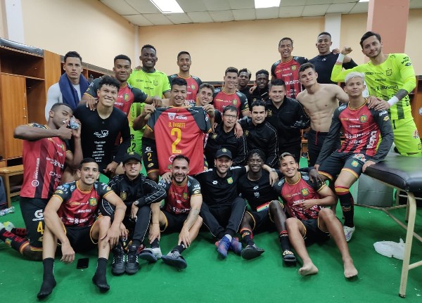 Aucas celebra en el estadio Alejandro Serrano. Foto: @Aucas45 -El penalti que amargó a los canarios